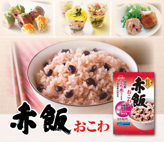 おこわ、釜めしの素など、ごはん関連の商品です。
