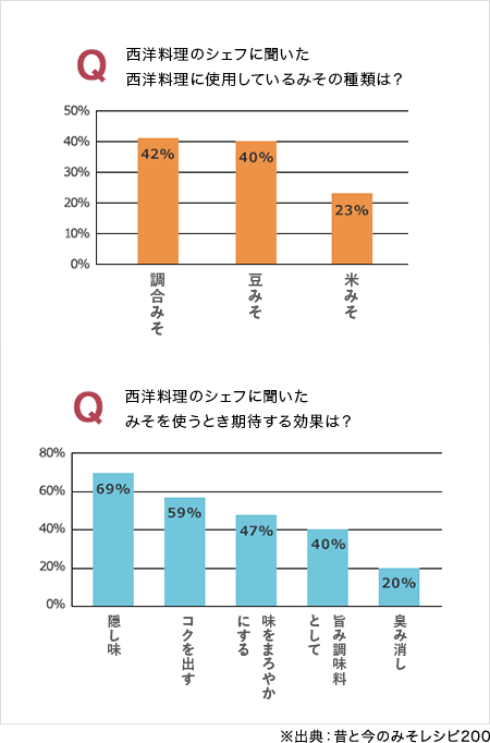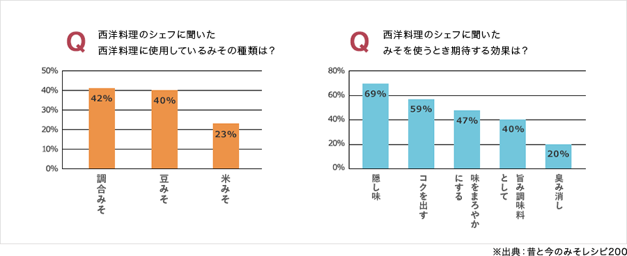 西洋料理のシェフが隠し味に使っている”みそ”。その中でも豆みそはタンパク質やうまみ成分(グルタミン酸)を多く含みます。