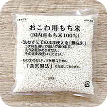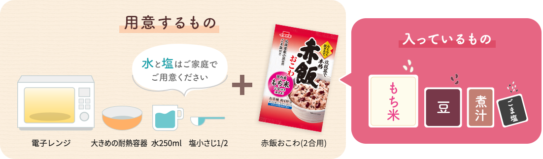 もち米(無洗米)、小豆、煮汁、ごま塩がセットになっています。