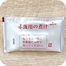 2袋の場合は370ml(185ml×2袋)、3袋の場合は555ml(185ml×3袋)の水を入れて、30分以上つけ置きしてから、炊いてください。●赤飯おこわ2合用