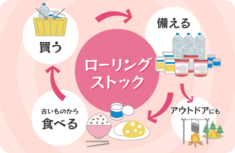 普段から使う食品を少し多めに買い置きしておき、 消費した分を買い足すことで、 常に一定量のストックが家庭で備蓄されている状態を保つための方法です。
