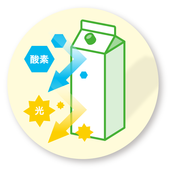酸素バリア性と遮光性に優れ、風味やおいしさを保ちます。(※自社500mlペットボトル容器 比)