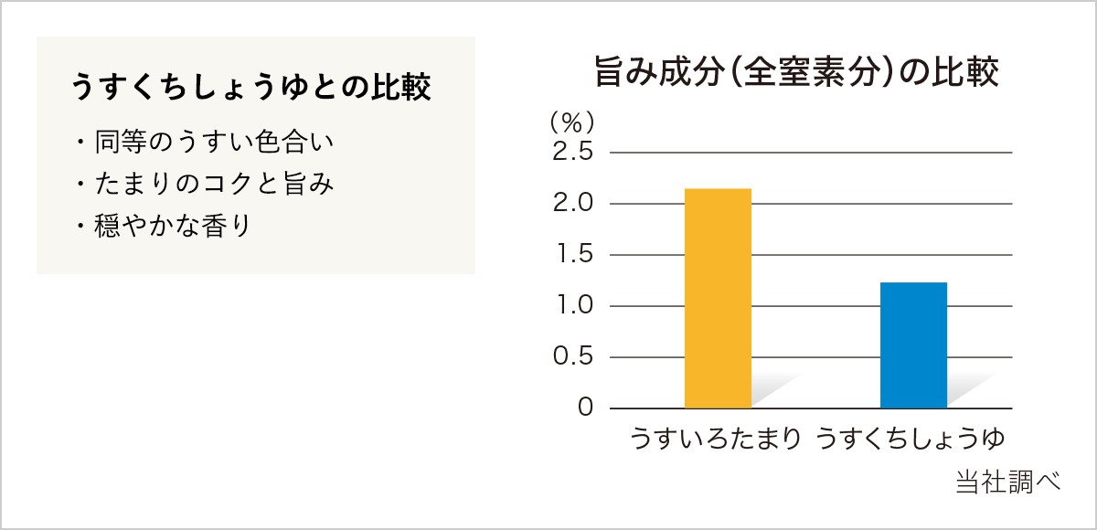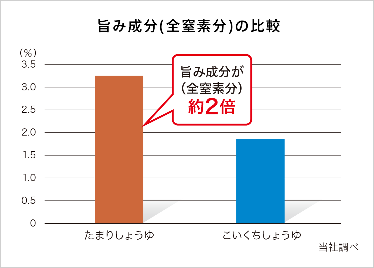 通常のこいくちしょうゆと比較して、全窒素分が多く、コク・旨みが強いしょうゆです。