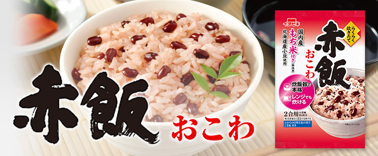 イチビキでは炊飯器で簡単に赤飯が炊ける「赤飯おこわ」を販売しています。ぜひご利用ください。