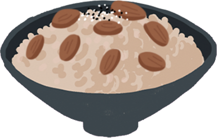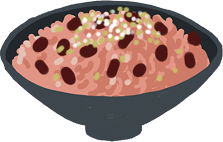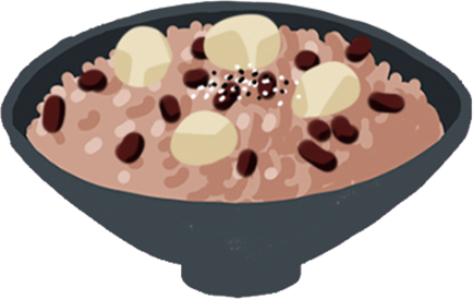 赤米とは、縄文時代に初めて中国大陸から日本に伝わってきたお米(インディカ種)で、炊きあがるとちょうど赤飯のような色をしています。現代の小豆やささげ豆を使う赤飯のルーツとしては、平安中期ごろ「枕草子」に「小豆粥」として原形が登場します。江戸時代後期には、一般庶民の家庭でも「ハレの日の食事」として広まりました。「江戸病」とも呼ばれた脚気(ビタミンB1不足)を予防するため、赤飯や小豆飯が頻繁に食べられていたようです。