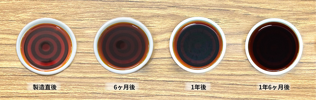 - 色度(色番)は「しょうゆの標準色」の番数のことです。番数が小さいほど色が濃く、大きいほど色が淡いことを示しています。