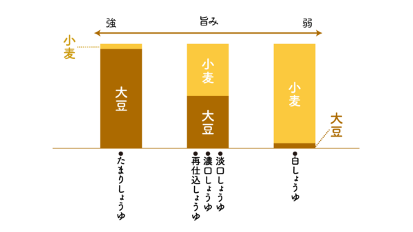 大豆、小麦、塩 | 16~17% | 大豆:小麦=ほとんど:少量 | ほとんど大豆だけで造られ、濃厚なうま味や独特な香りがある。 熱を加えると美しい赤色になるため、濃厚な色ツヤで料理を仕上げることができる。 |