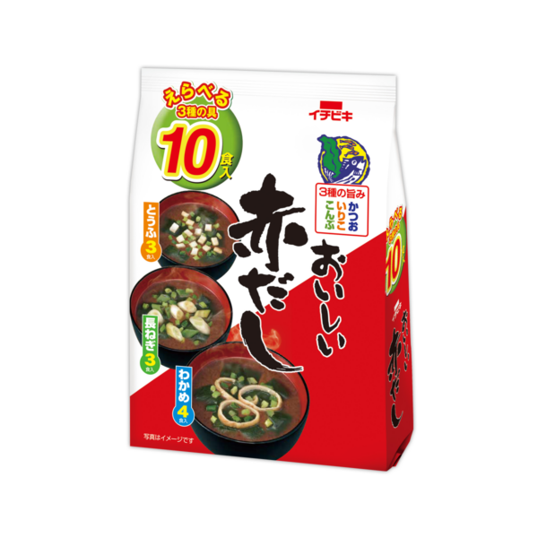 ●わかめ、長ねぎ、とうふの3種類の選べる具がついた、赤だしみその即席みそ汁です。
