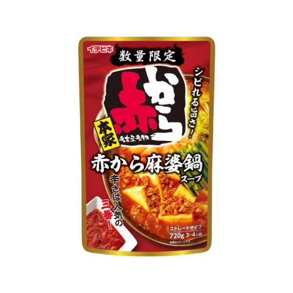●人気の「赤から鍋スープ3番」に“金の太陽花椒(R)”を加えた四川風麻婆鍋スープです。