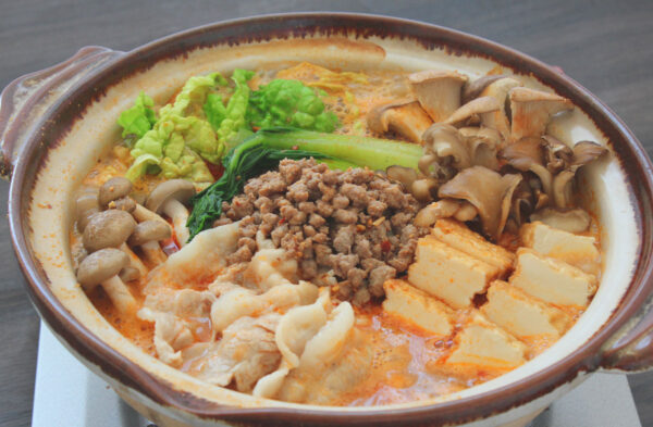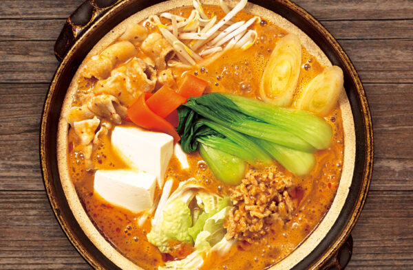 ●特製豆板醤と豆みそ・米みそを合わせたスープに、焙煎ねりごまのコクと焙煎すりごまの風味を加えて濃厚に仕上げました。