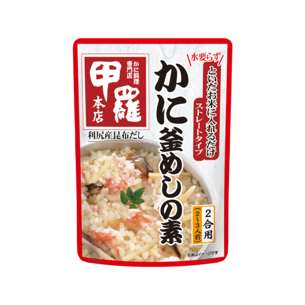 ●かに料理専門店「甲羅本店」のかに釜めしが、ご家庭で手軽に楽しめます。