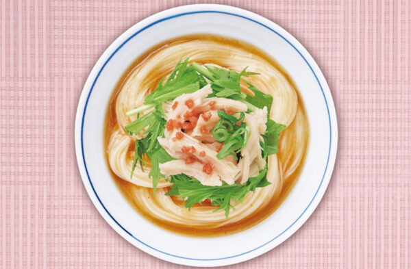●大根おろしに梅肉を合わせて、爽やかな梅の香り豊かなさっぱりつゆに仕上げました。