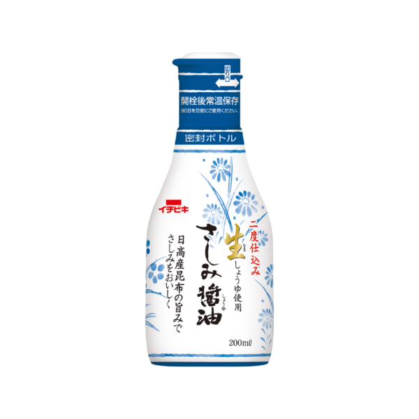 二度仕込み生(なま)しょうゆに、日高産昆布の旨みとみりんのコクを合わせました。甘みと旨みのあるしょうゆで、刺身の味が引き立ちます。
