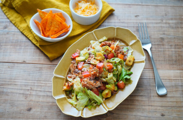 レンチン赤から肉そぼろで絶品◎サラダ風赤からそうめん