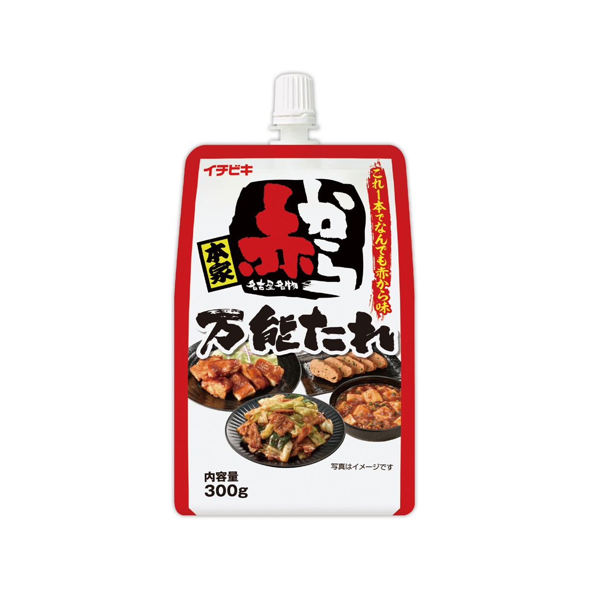イチビキの「赤から万能たれ」は、 “辛さを極めたやみつきの旨さ”の赤から鍋3番の味わいをベースにして、料理に使いやすく味を調えたたれです。どんなメニューもこのたれで味付けすれば、たちまち赤から味に!もちろん、赤から鍋も作れます。