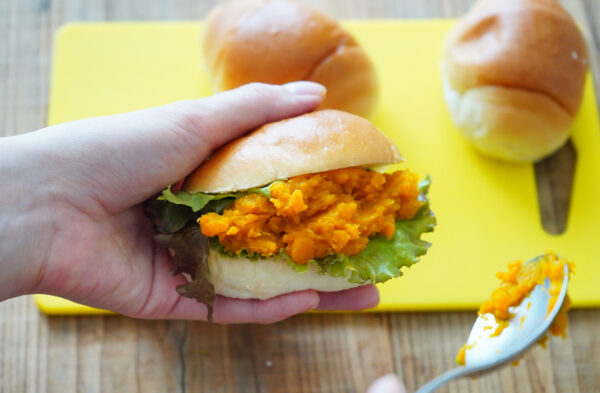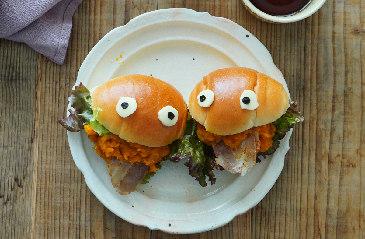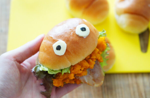 ハロウィンランチに!かぼちゃサラダ入りおばけサンドウィッチ
