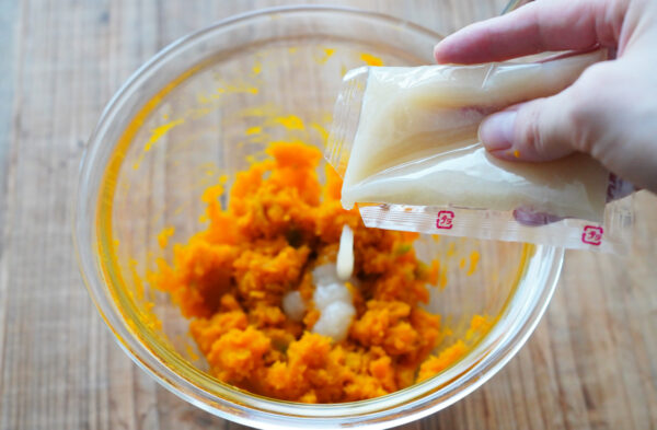 かぼちゃペーストに糀あま酒を加えることで、優しい甘みに仕上げます。