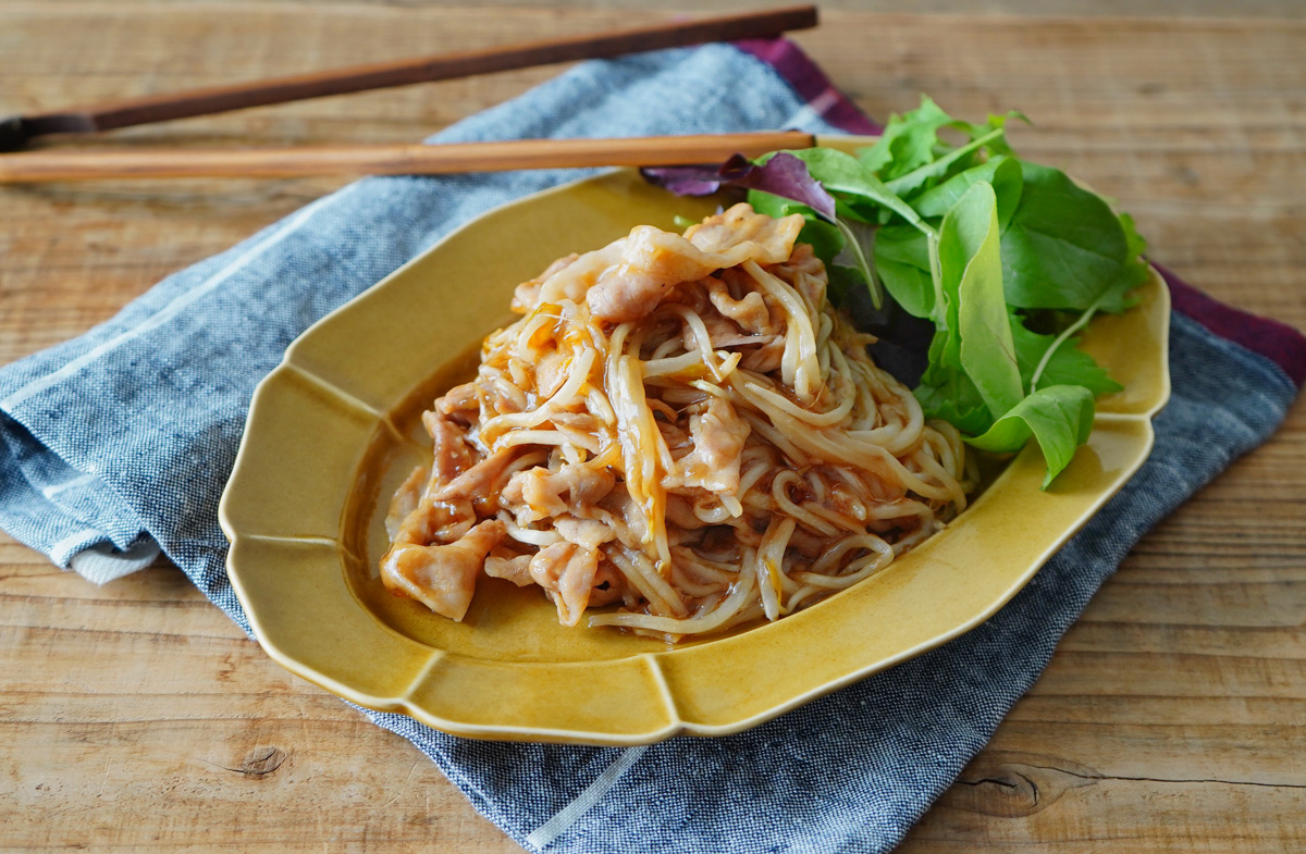 具材をミルフィーユ状に重ねていくことで、豚バラ肉がくっつかず、献立いろいろつゆと豚バラ肉の旨みがもやしに染み込みやすくなります。
