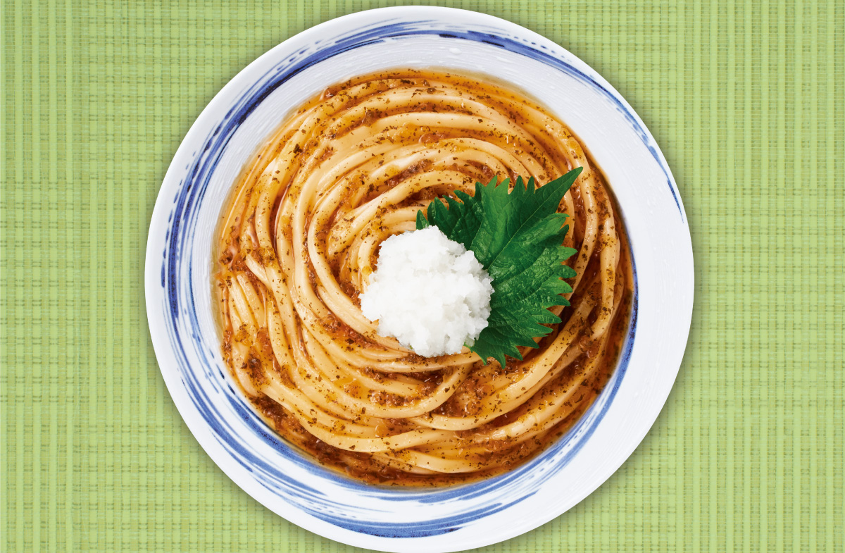 うどんを器に盛り、「さっぱりおろしつゆ香る大葉」をかける。