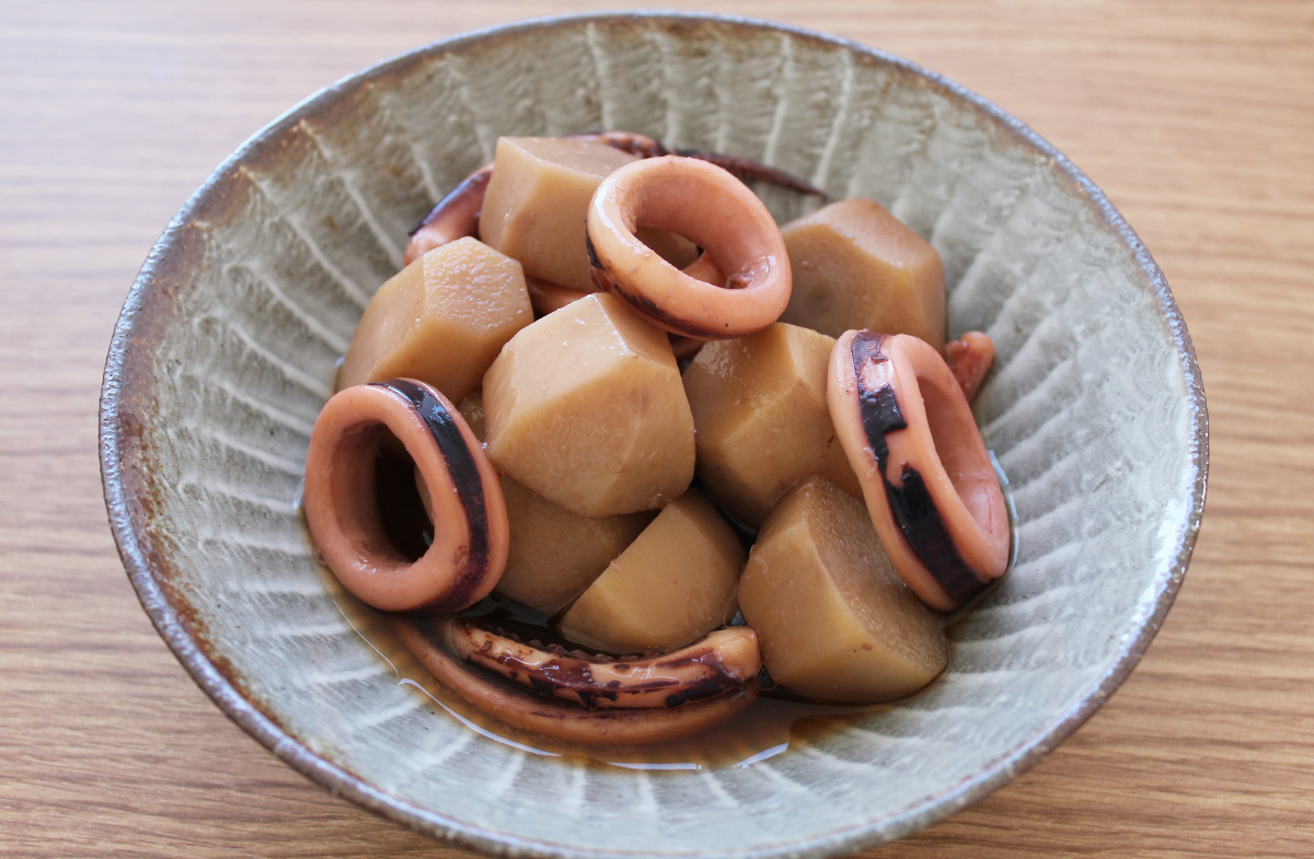 イカの旨みが里芋にしみてホクホク美味しい!減塩だし醤油とみりんでやさしい味わいに仕上げた、ほっとする味の煮物です。