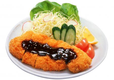 豚肉は叩いて筋切りをし、塩、こしょうで下味をつけ、小麦粉、溶き卵、パン粉の順につけ、油で揚げる。