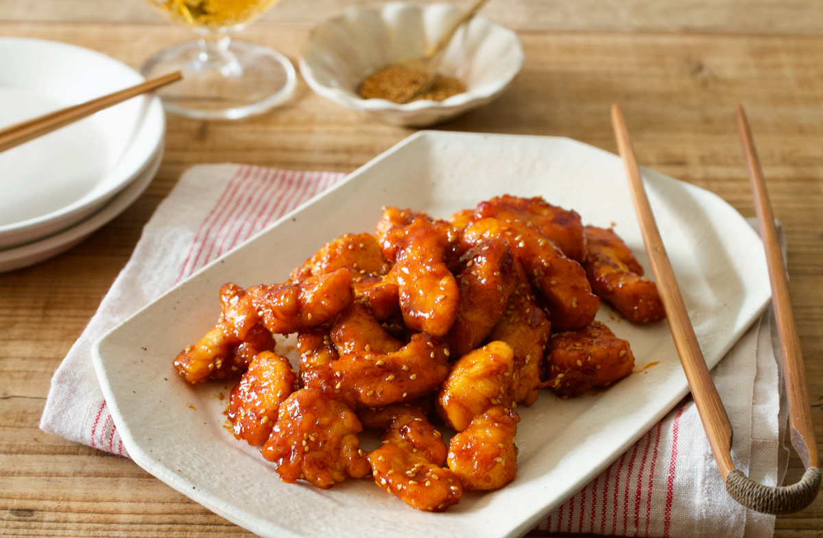 赤から焼のたれと鶏むね肉で簡単韓国レシピ♪ピリ辛ヤンニョム風チキンスティック