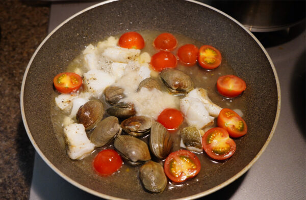 塩糀で簡単!フライパンでOK♪タラのアクアパッツァ