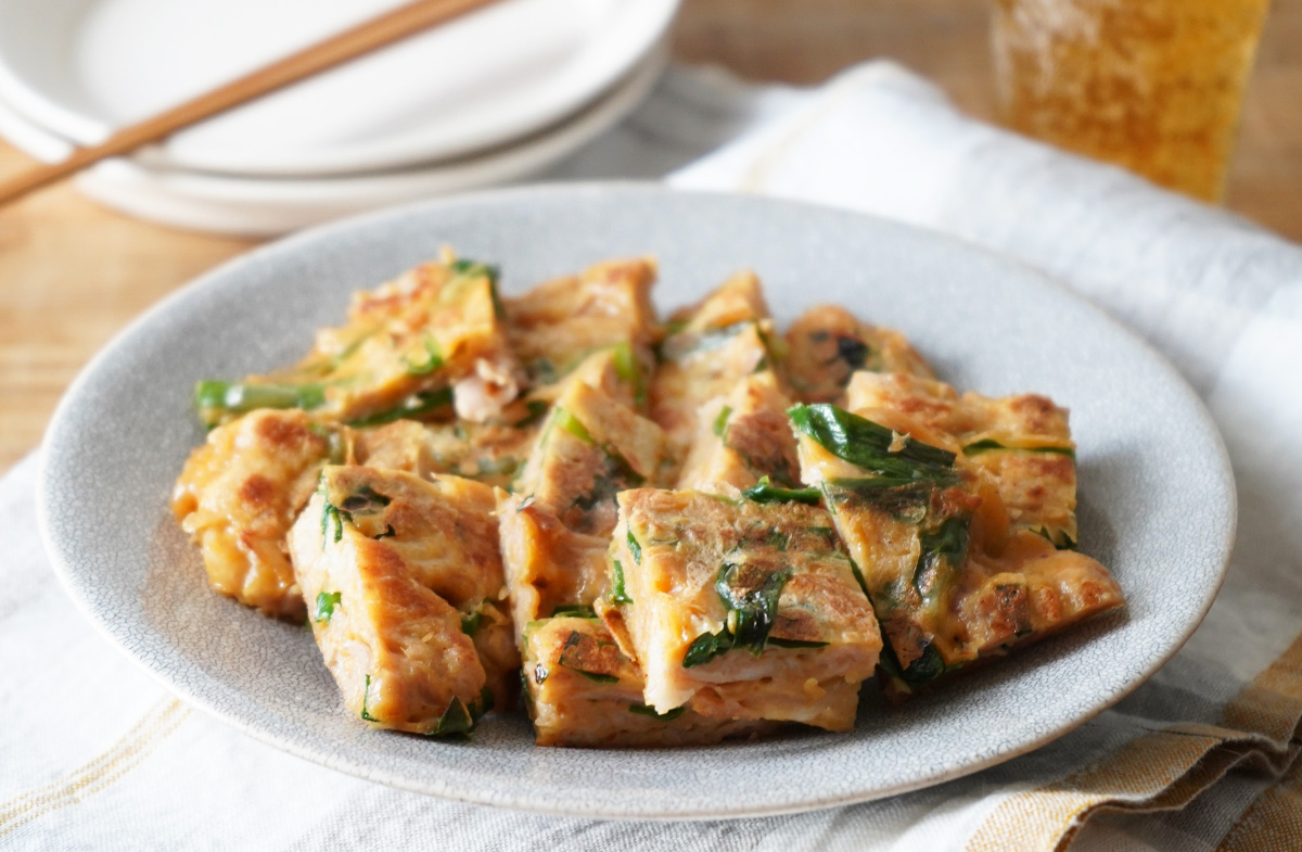 豚バラ肉をたっぷり使用した、ビールとの相性抜群のボリューム満点チヂミレシピです。生地の中に献立いろいろピリ辛みそを練り込むことでしっかりと味がつき、タレがなくても美味しく食べられます!お酒のおともにも、おかずにもぴったりな一品です。