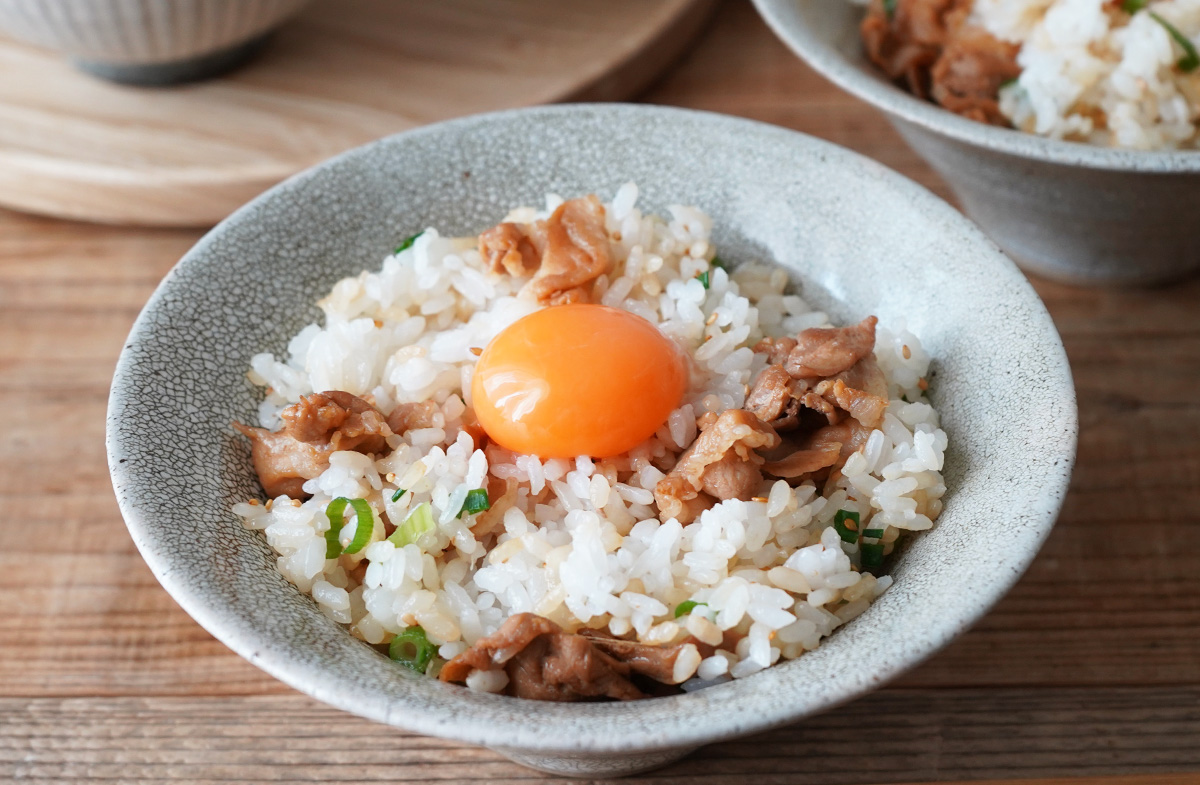 この一杯で大満足!フライパンで調理した具材をご飯に入れて混ぜるだけで、満足感たっぷりの丼が完成します。具材をたくさん入れればおかず要らずなので、忙しい時にもおすすめの一品です。