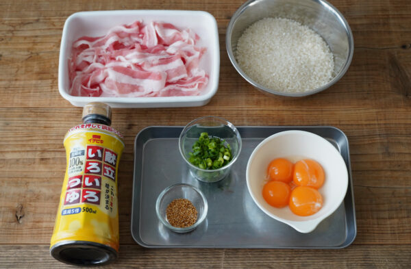 米を研いで水気をきり、炊飯器に入れ2合用の水加減で通常モードで炊く。