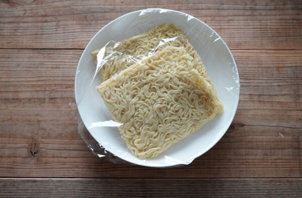 中華麺を耐熱容器に入れ、ふんわりとラップをかけて電子レンジ(600W)で1分加熱する。