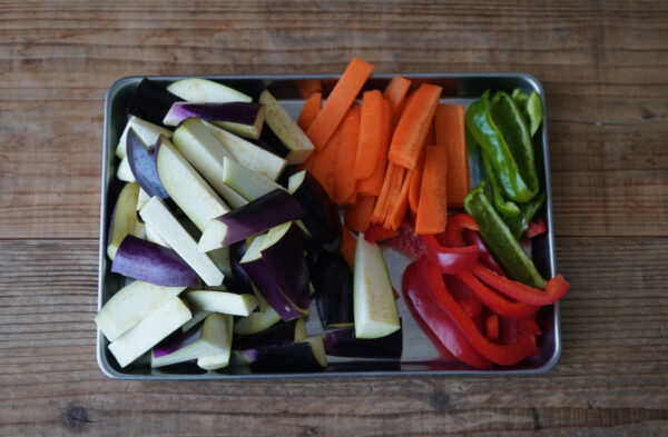 野菜は長さを揃えて、食べやすく切る。