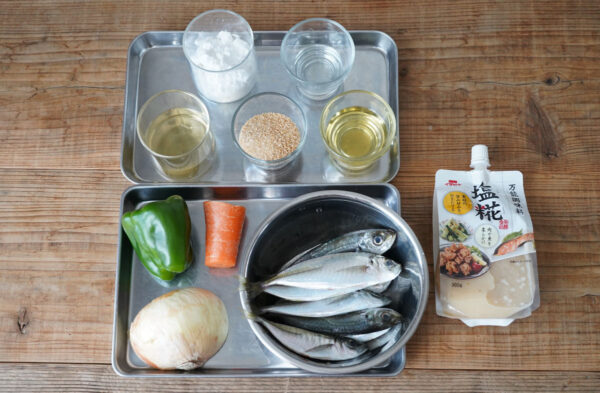 意外に簡単♪包丁なしで下処理できて骨ごとおいしい◎小あじの塩糀南蛮漬け