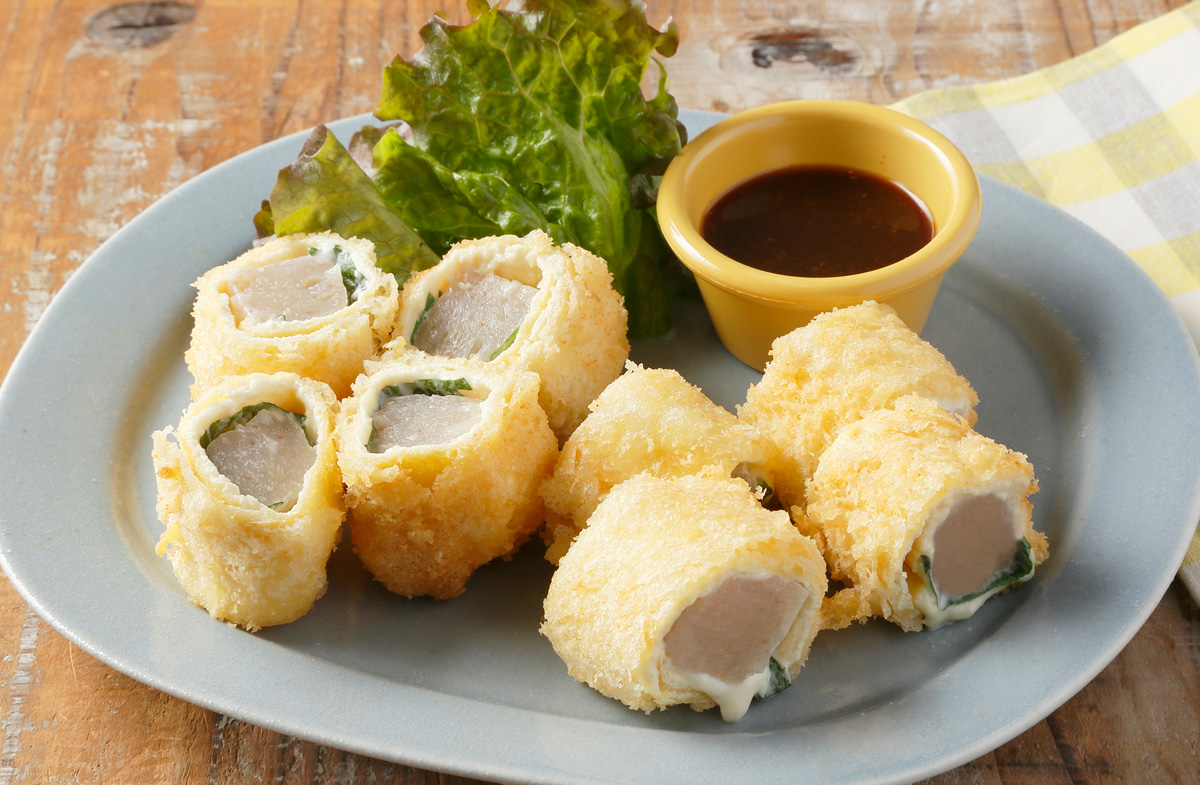 しょうゆ塩糀ソースでこんにゃくと油揚げのフリット
