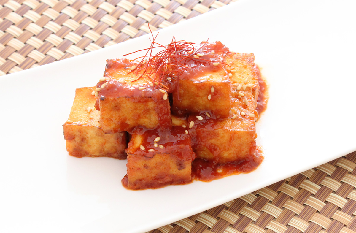 コチュジャン豆板醤入りの旨辛塩糀で味付けした、甘辛さがクセになる韓国風おつまみです。