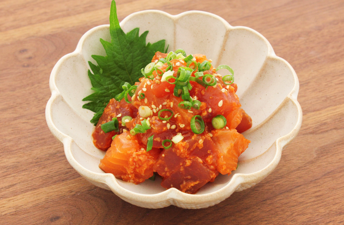旨辛塩糀で!マグロとサーモンのやみつき和え