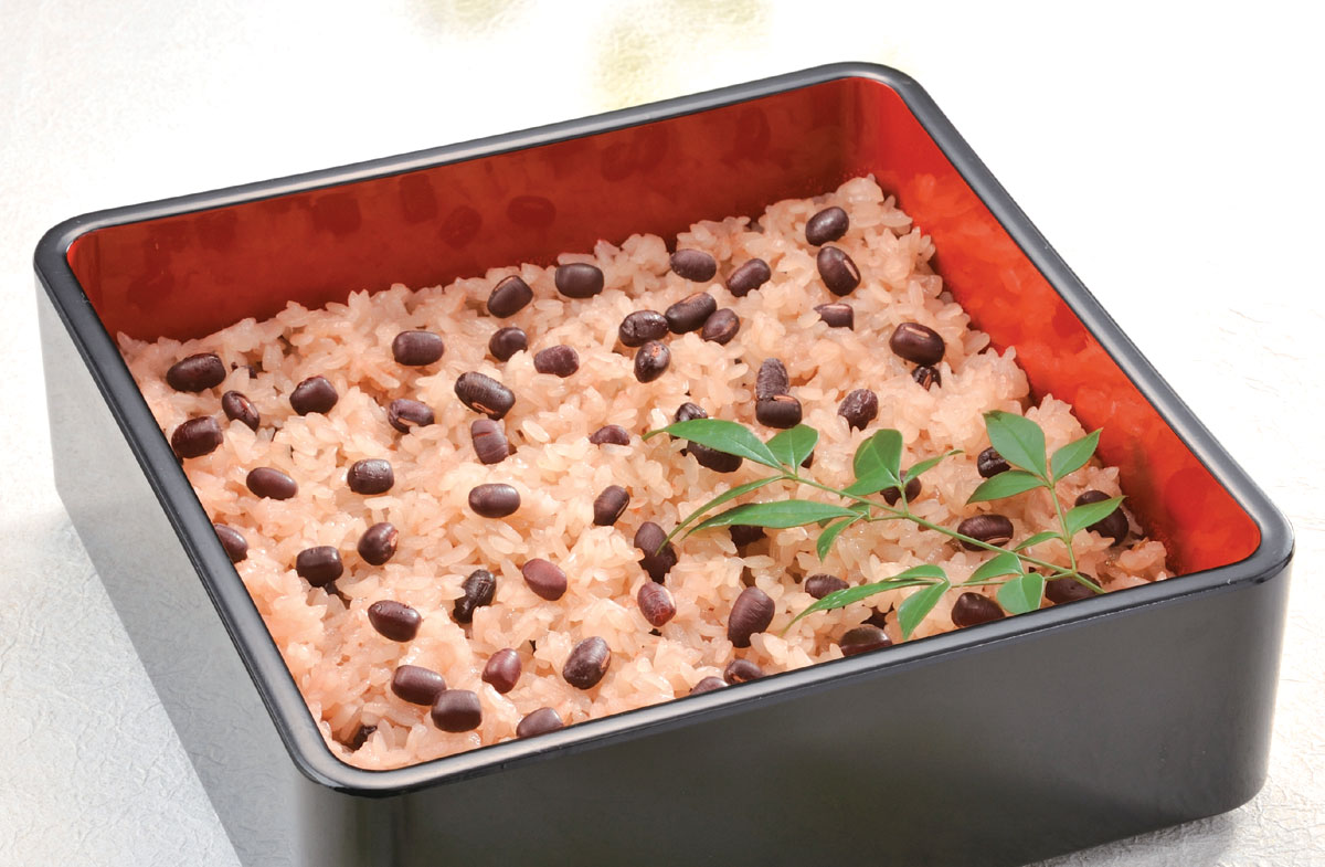 「赤飯の素2合用」は、北海道産小豆と、着色料不使用の自然な色の煮汁がセットになっています。