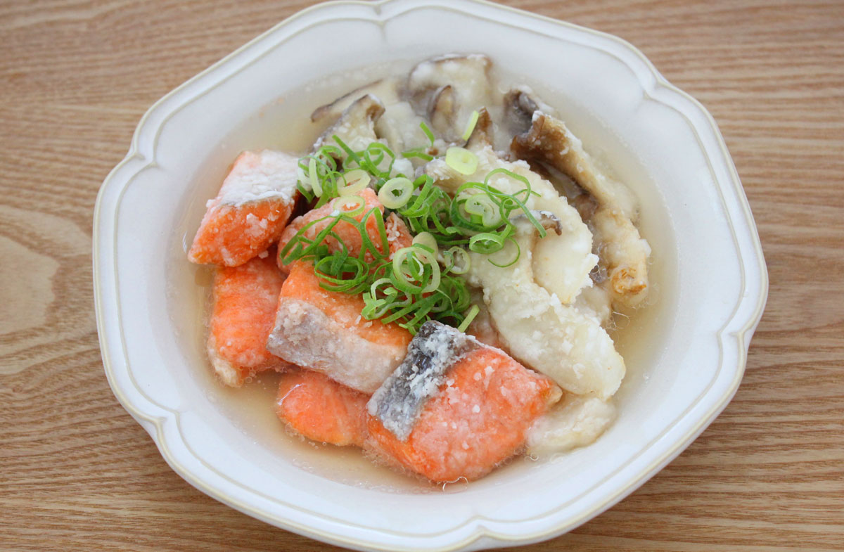 極上国産白だしでだし香る!鮭とエリンギの揚げだし風
