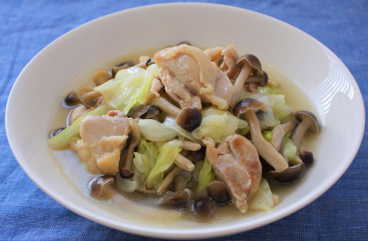 極上国産白だしでだし香る!鶏肉・キャベツ・しめじのフライパン煮