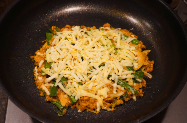 チーズが溶けてきたら裏返し、弱めの中火でチーズに焼き色がつくまで焼く。焼き色がついたら火を止めて、粗熱が取れるまで待つ。