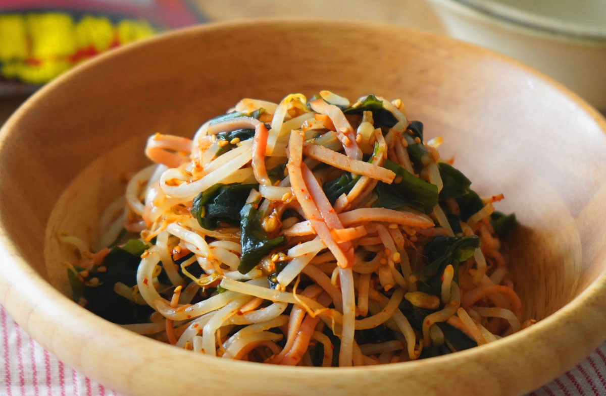 もやしは加熱後、しっかりと水気を切ってから使用することで時間が経っても水っぽくなりません。加熱時間はご家庭の電子レンジに合わせて調整してください。