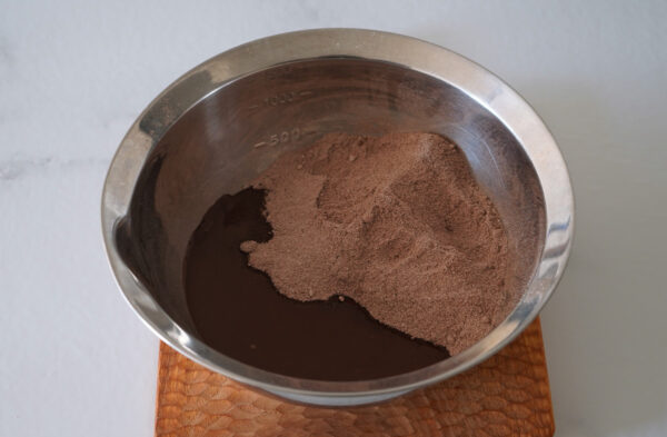 Aをボウルに入れ、湯せんで溶かしながら、ゴムベラで均一に混ぜる。