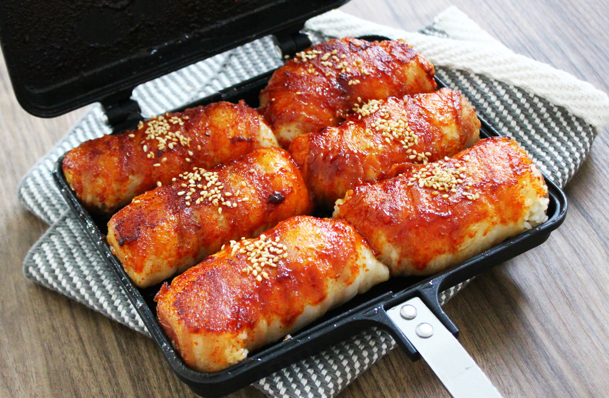 赤から焼のたれとホットサンドメーカーで作るキャンプ飯!赤から肉巻きおにぎり