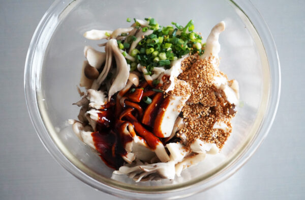 赤から焼のたれで簡単!3種のきのこの赤から和え