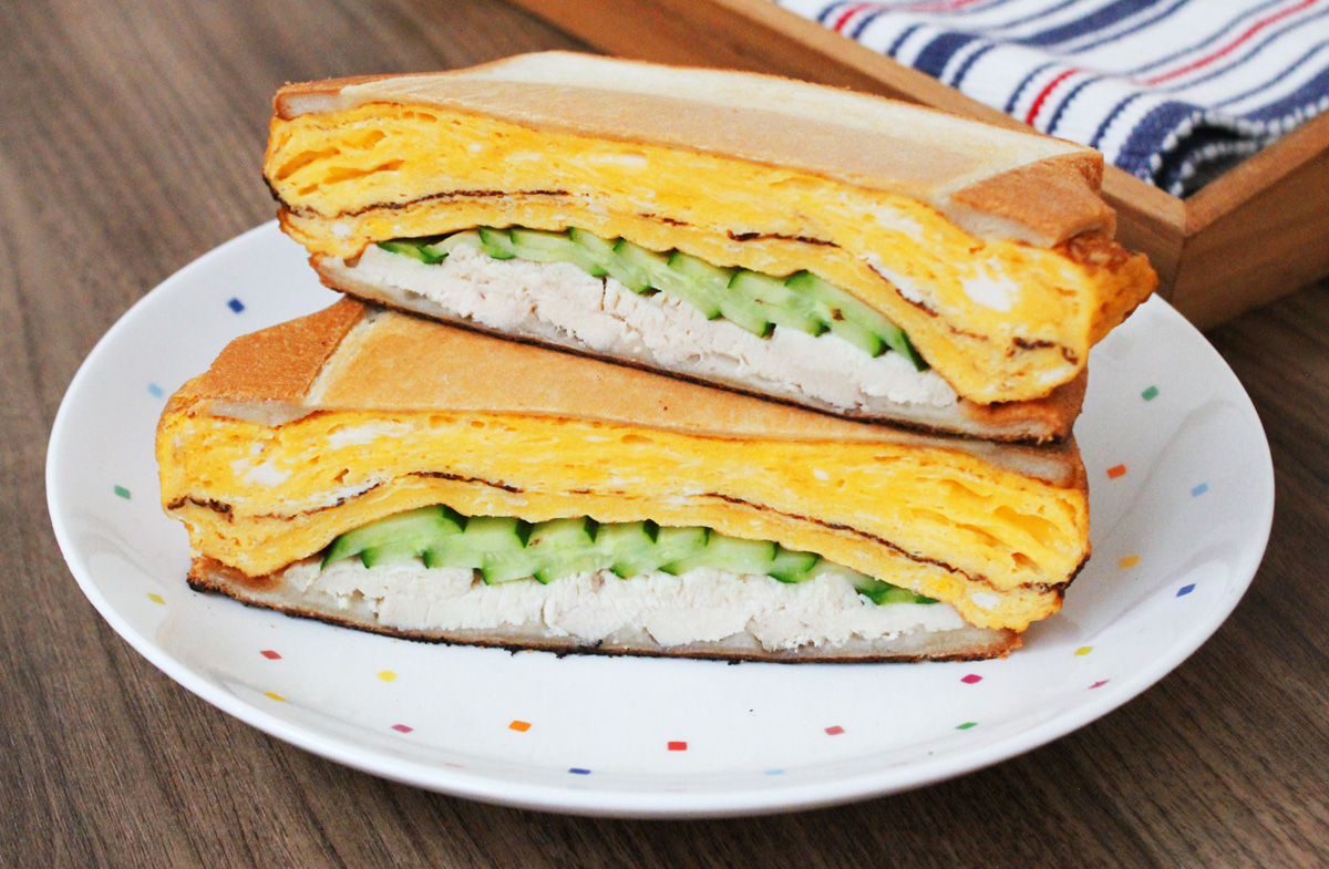 萌え断◎塩糀玉子焼きとサラダチキンのホットサンド