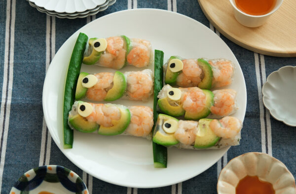 断面がキレイに見えるように、縦向き(玉子焼きを細長く切る方向)に切り分ける。