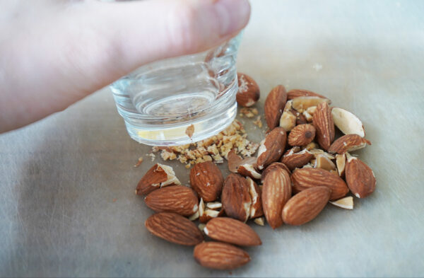 アーモンドは細かく砕く。(丈夫なカップの底を押し付けるようにしてすりつぶすと良い。)
