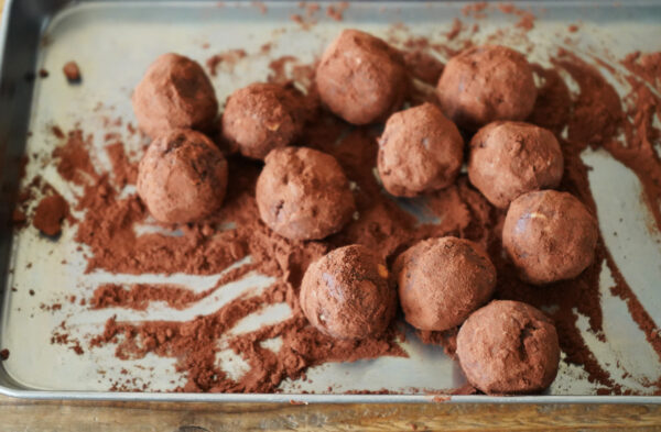 手のひらで丸め、ココアパウダーを全体にまぶす。