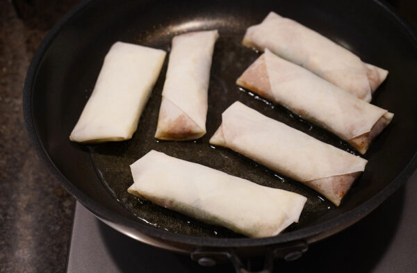 フライパンに深さ5mm程の油を入れ、中火で熱し、(5)を並べて両面にこんがりと焼き色がつくまで揚げ焼きする。