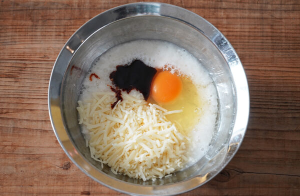 赤から焼のたれで長芋にしっかりと味付けして、おかずにもおつまみにもなる万能な一品に。チーズは赤から焼のたれと相性抜群。香ばしい香りが食欲をそそります。